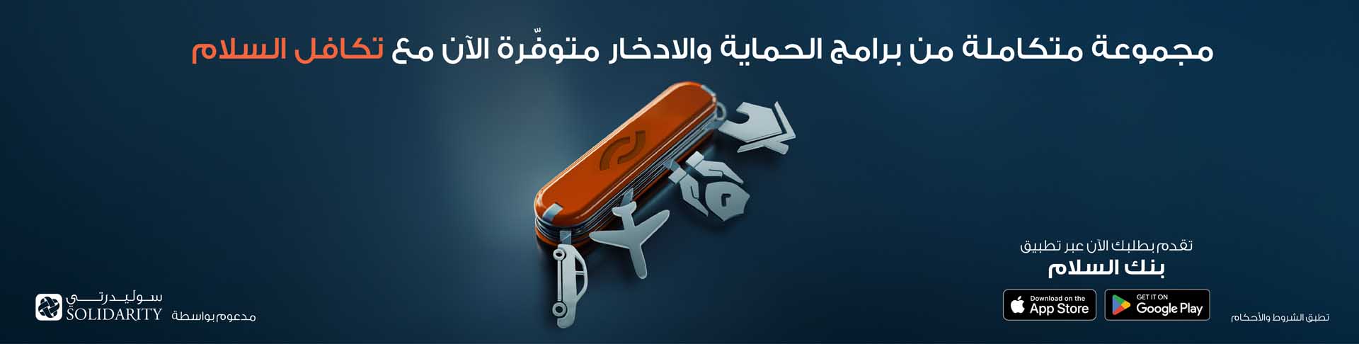 يعتبر بنك السلام محطة واحدة شاملة ومتكاملة لتلبية احتياجاتك التأمينية المتوافقة مع أحكام الشريعة الإسلامية بالتعاون مع سوليدرتي البحرين.