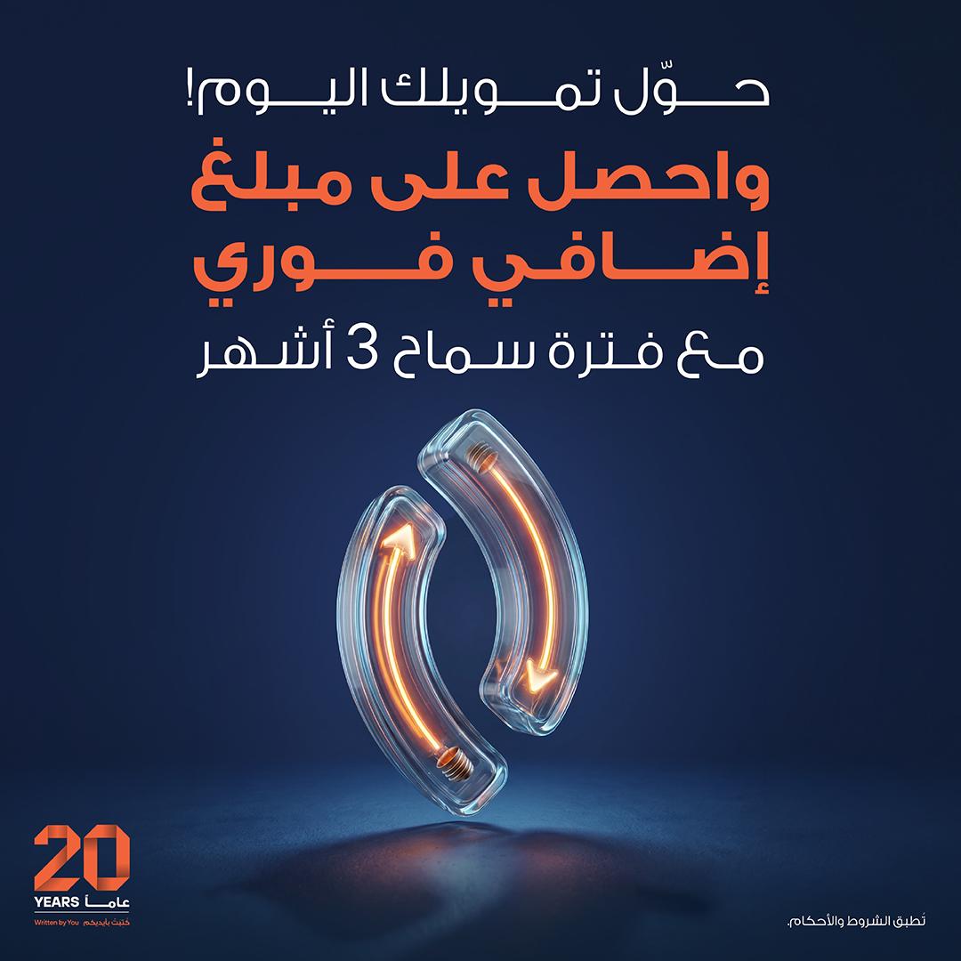 واستفد من مبلغ نقدي فوري مع فترة سماح 3 أشهر عند تحويل تمويلك من بنوك أخرى.